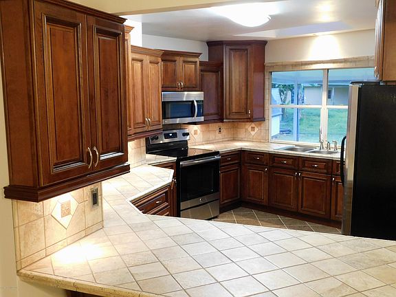 Check out the Kitchen in this Updated 3 Bedroom, 2 Bath, 2 Car Garage Home. This Beautiful Kitchen has 22 Cabinets and 15 Drawers, a Snack Bar, and Stainless Steel Appliances. A Kitchen you would expect to find in a lot more expensive home. Both baths have been updated with New Toilets, and Vanities. No carpeting, Completely Tiled, except one bedroom has Wood Laminate. All 3 Bedrooms have Walk In Closets. Large Screen Porch with Pass Thru Windows, and also includes a 10 x 12 Storage Shed. AC was also updated about 3 years ago.