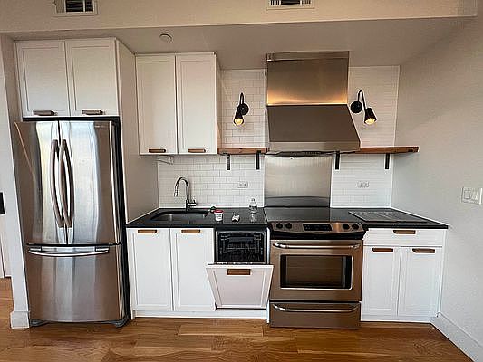 $3,000, 1 month on 12 month term, $2,750 Live the New York life that only exists on the screen, at the Ridgewood Theatre. This gorgeous one bedroom apartment features condo style finishes, a modern open kitchen, and generous closet space. Bathroom is large and luxurious with rainfall showerheads and exquisitely crafted tilework. Huge windows flood the homes with natural light. While touches such as hardwood floors, stone countertops, and crafted moldings give this apartment a unique sense of style. This home comes with stainless steel appliances, built in dishwashers that match the cabinetwork, and the option to add a washer/dryer in the unit. The Ridgewood Theatre offers an array of amenities unlike any in the neighborhood. A top of the line gym. A full service laundry room. A co-working office space complete with private meeting rooms, as well as a resident lounge perfect for all of your working from home needs. We also offer plentiful outdoor common spaces including a huge planted terrace and a fully furnished roofdeck with 360 views of the Manhattan skyline plus Brooklyn, Queens, and what lies beyond. The building itself is a local landmark and you see that history on a quick tour. From its largely preserved exterior, to the marque sign out front that serves as an iconic balcony. This community was built with care to preserve the feel, history, and excitement of the site; giving residents an unparalleled living experience. With only a twenty minute commute to Manhattan you have the full city at your fingertips while you watch it from your personal oasis. Amenities: Elevator Laundry Room Bike Room Media Room Package Room Pet Spa Business Center Resident Lounge Children's Playroom Furnished Patio Communal BBQ Grills/Hammocks