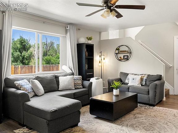 Stunning home with both mountain & river views along Fountain Creek! Discover your private oasis nestled along the scenic Fountain Creek Regional Trail, with direct trail access right from your backyard! This charming 3-bedroom, 2.5-bathroom home, complete with a 2-car garage, offers mountain and river views! Step into a freshly painted, open-concept main level featuring a bright living room prewired for surround sound, perfect for movie nights or entertaining. The modern kitchen boasts newer appliances, a breakfast bar, and a seamless flow into the dining area, with great views of the backyard and Fountain Creek beyond. Upstairs, the spacious primary bedroom includes an attached bathroom and is just steps from a versatile loft/office area showcasing an exceptionally rare river view—a perfect spot for work or relaxation, also prewired for surround sound. Two additional bedrooms and a full bathroom complete the upper level. Notable upgrades include a new furnace (2022), newer water heater, newer roof, and a whole-home vacuum system for effortless living. Located just minutes from Fort Carson, schools, shopping, downtown, and endless trails!