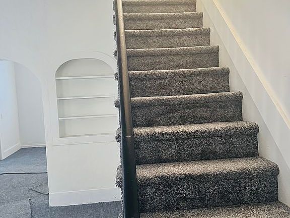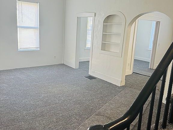 Two story three bed one bathroom Home, new roof, new furnace, new porch, new carpet throughout all remodeled, ready to move in home city water, sewage, and trash also has private offstreet parking with a garage and spacious fenced in yard .
