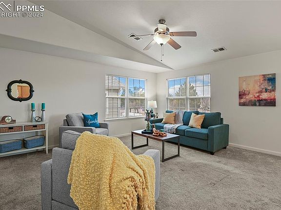 Beautiful end unit condo located in the desirable Spring Creek neighborhood. This spacious two bedroom two bathroom home, is in close proximity to Fort Carson and downtown Colorado Springs. The master bedroom includes an adjoining bathroom, walk-in closet with an ample amount of space and a walkout to the deck. The secondary bedroom is generous in size, has plenty of closet space and is just steps from the full size bathroom. This home is great for entertaining! The dining and kitchen flows right into the spacious living room that offers plenty of natural light along with a walk-out covered deck!! The kitchen includes a breakfast bar, plenty of cabinets, counter space, a pantry, and beautiful wood floors that extend into the dining area. The community offers clubhouse space for gatherings, parks, playgrounds, greenways and only minutes away from I 25. This condo is ready to move in and Easy To Show!!!