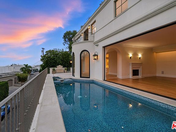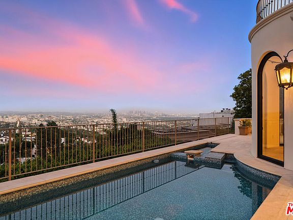 Set above the world-famous Sunset Strip, just across from the Chateau Marmont, this striking Italian-inspired villa is the perfect blend of timeless elegance and modern sophistication. Spanning two hillside parcels, this estate offers over 6,600 square feet of carefully designed living space with unobstructed city views from nearly every room. Privately positioned on a quiet cul-de-sac, the home welcomes you with a dramatic two-story entry, sweeping staircase, and elevator access to all levels. Twelve-foot ceilings and expansive Euroline doors and windows flood the interiors with light and frame panoramic vistas, seamlessly connecting indoor spaces to multiple terraces and a dazzling mosaic-tiled pool and spa.Inside, the estate is adorned with curated details: crystal chandeliers, hand-laid mosaics, custom lighting, and a refined mix of limestone and hardwood floors. The chef's kitchen is outfitted with premium Sub-Zero, Thermador, and Miele appliances, ideal for both casual meals and entertaining. The home features four spacious bedrooms and four and a half bathrooms, including an exceptional primary suite. This luxurious retreat offers 16-foot ceilings, Parquet floors, a fireplace, and a resort-style bath with steam shower, soaking tub, sauna, and dual walk-in closets. Two private terraces off the suite provide an incredible setting for both sunrise and sunset views. Additional highlights include a media room, an office with its own terrace, a tranquil garden with mature lemon trees, and a four-car garage. Every space has been thoughtfully reimagined for comfort, functionality, and visual impact. This is a rare opportunity to lease a fully realized view estate in one of Los Angeles' most prestigious enclaves, offering privacy, scale, and craftsmanship just minutes from the heart of the city.