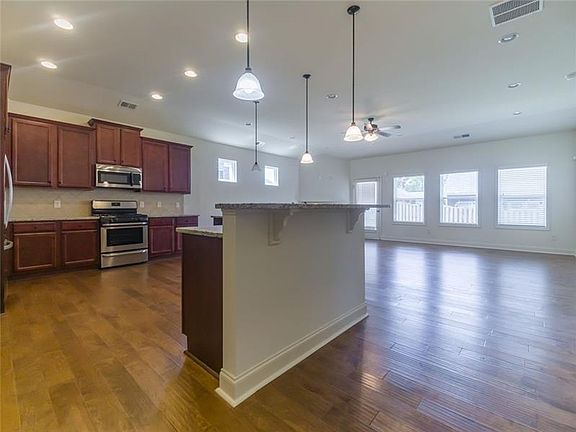 - Kitchen Features: Breakfast Bar, Cabinets Stain, View to Family Room, Pantry Walk-In, Solid Surface Counters