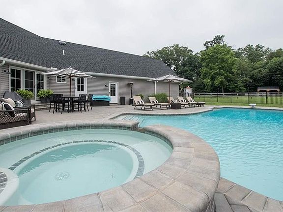 Fall in love with this beautiful renovated 5800 sq. ft. +/- farmhouse nestled on 3.57+/- acres in Hershey. 5 BR, 3BA/2 1/2 BA. Features lg custom kitchen, lg family room leading to paver patio and heated, gunite pool w/ spa, floor-ceiling windows, original stone wall, office w/ sliding barn door, bar, a bonus room w/ heating/cooling and more. This home is immaculate preserving certain elements of an old farmhouse while blending new meticulous details to make it the flawless masterpiece you are looking for.