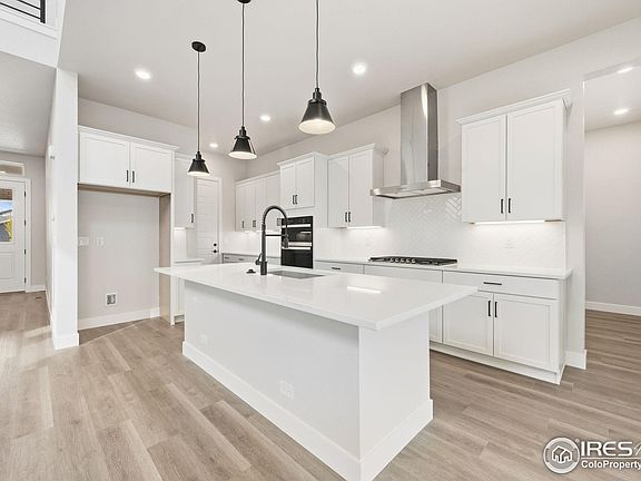 Plan 3 at Festival at RainDance by Trumark Homes features a 3-car tandem garage! Great for toy storage or yard equipment. The expansive two-story plan offers 2,752 Sq. Ft. of living space with four bedrooms and three baths. Off the front entry is a secondary bedroom and full bath. Beyond the entry is the gourmet kitchen featuring a spacious walk-in pantry and a center preparation island. This island overlooks the open-ceiling dining room and the great room, complete with a modern gas fireplace. The kitchen includes 42" deluxe white shaker style cabinetry, quartz countertops with tile backsplash, stainless steel appliance package with 5-burner gas cooktop, convection oven, built-in microwave, and dishwasher. The kitchen conveniently connects to the office and the covered patio. Upstairs, you'll find a spacious loft and two secondary bedrooms connected by an ensuite bathroom with dual sinks. The primary suite offers a luxurious, spa-like bathroom with a walk-in shower and freestanding tub. An expansive walk-in closet completes the primary suite. The home comes with LVP flooring throughout the majority of the main floor, luxurious carpet in bedrooms, deluxe primary shower tile with tile shower pan, spacious10 foot ceilings on the main floor, 9 foot ceilings on the second floor and basement, 8-foot interior doors, insulated steel garage door, tankless water heater, dual A/C, dual furnace, and much more! This home will also include front AND back yard landscaping and fencing for your convenience.
