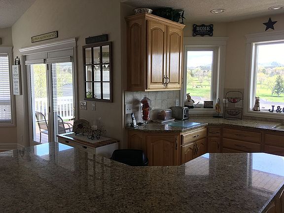 Beautiful mountain views. Wrap-around porch. All hardwood floors upper-level. Upgraded, new A/C & furnace (Sep 2018). Rinnai Tankless gas hot water heater. Extra large garage. Built-in utility garage with garage type door. In ground lawn sprinkler system. Private master bedroom porch with mountain views. Quiet neighborhood, low traffic area - not many homes on this street! Beautiful view of the golf course. Tru-Fiber fiber optic Internet! House is cabled with CAT-5e network cable. Whole house central vacuum system. Large storage area and mechanical room in the lower level. Reverse Osmosis drinking water system with large 20 gal tank. Whole house water softener system. This is a beautiful home, dream kitchen-hickory cabinets, island, convection oven, large pantry, dining area all with amazing view of the east mountains and highland golf course. Walkout onto the connected deck for a closer look and to relax. Huge master bedroom with master bath and walk-in shower. Main floor laundry, fireplace up and down, lots of open living space with vaulted ceilings. Don't forget the golf cart garage and additional space in the already triple car garage.