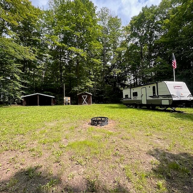PULL RIGHT IN & ENJOY this private 5 Acre parcel that has a 5'' well- installed 2023, 200 Amp electrical service stance installed 2023 and existing septic tank and field. All the hard work is done! Located just NW of Mio. Campers Welcome, Tiny Homes Welcome or bring your building plans. Property has big clearing and 3 outbuildings. Sit back and enjoy the mature maples. property is level and 95% wooded. Access by private road where you'll be tucked in tight amongst mature timbers. Close to the Ausable River, ''the back waters'' and thousands of acres of ORV trails. The camper pictured is NOT included but may be available to purchase separately.
