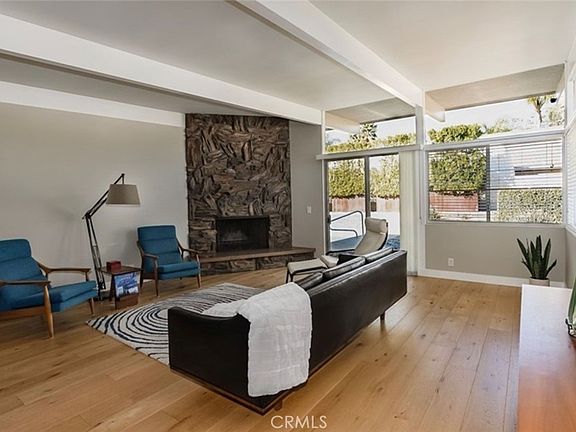 STEP BACK INTO THE ELEGANCE OF THE 1960S WITH THIS BEAUTIFULLY CUSTOM-BUILT MID-CENTURY MODERN HOME. METICULOUSLY MAINTAINED AND THOUGHTFULLY UPDATED, THIS PROPERTY CELEBRATES ITS ORIGINAL CHARM WHILE INCORPORATING TASTEFUL MODERN ENHANCEMENTS. FROM THE MOMENT YOU ARRIVE, YOU'LL APPRECIATE THE RESTORED CUSTOM CABINETRY AND WELL-PRESERVED VINTAGE BATHROOMS THAT ECHO THE HOME'S ORIGINAL CRAFTSMANSHIP. THE KITCHEN FEATURES GRANITE COUNTERTOPS, STAINLESS STEEL APPLIANCES, AND BLENDS SEAMLESSLY INTO THE AESTHETIC WITH NEW WOOD FLOORING FLOWING THROUGHOUT THE MAIN LIVING AREAS. THE SPACIOUS LAYOUT OFFERS OVER 2,800 SQUARE FEET OF LIVING SPACE, INCLUDING A FORMAL LIVING ROOM WITH A STRIKING ORIGINAL PETRIFIED WOOD FIREPLACE AND A LARGE SUNROOM/BONUS ROOM WITH A SECOND MATCHING FIREPLACE—PERFECT FOR RELAXING OR ENTERTAINING. FLOOR-TO-CEILING WINDOWS INVITE NATURAL LIGHT AND SHOWCASE STUNNING VIEWS OF THE EXPANSIVE, HALF-ACRE BACKYARD. DESIGNED WITH GATHERINGS IN MIND, THE OUTDOOR SPACE INCLUDES A SALTWATER POOL WITH A SPILL-OVER SPA, A NEWLY INSTALLED SAFETY GATE, A TWO-LEVEL PATIO WITH BUILT-IN FIRE PIT, PUTTING GREEN, AND MATURE FRUIT TREES—PLUS DROUGHT-TOLERANT LANDSCAPING FOR LOW-MAINTENANCE BEAUTY. THIS HOME ALSO OFFERS EXCEPTIONAL GARAGE SPACE: TWO 2-CAR GARAGES (ONE ATTACHED, ONE DETACHED), AN RV GARAGE WITH HOOKUPS, AND A GATED COURTYARD FOR ADDITIONAL PARKING OR STORAGE. THE DETACHED GARAGE FEATURES HVAC AND A BATHROOM, WHILE THE ATTACHED GARAGE INCLUDES AN UPSTAIRS OFFICE OR STORAGE SPACE. ALL GARAGE FLOORS HAVE BEEN PROFESSIONALLY REFINISHED. PAID-OFF SOLAR ADDS VALUE AND EFFICIENCY, AND ORIGINAL ARCHITECTURAL PLANS ARE INCLUDED—OFFERING A RARE OPPORTUNITY TO OWN A HOME WITH BOTH CHARACTER AND FUNCTIONALITY.