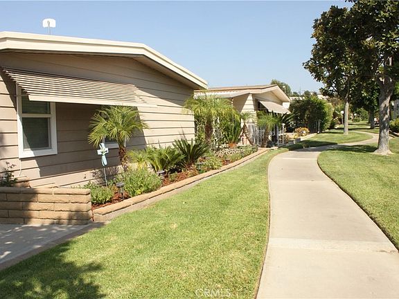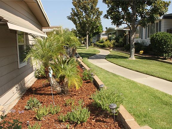 Senior Park Community55+ Completely remodeled home on a corner lot, with adjacent guest parking and close to all ammenitties. This home has been recently remodeled with many designer touches and top quality materials and details. Featuring an open floor plan which includes and entry sitting area/living/ dining Kitchen and an additional office space. The beautiful kitchen is equipped with high end soft close cabinetry with pull outs, quarts counters, integrated sink, a central sit-in Island, a picturesque garden window and a full appliance package. The dining area features a built-in serving counter with pull out drawers and an integrated beverage cooler for more convenient entertaining. The office area includes a functional built-in desk and double sliding doors leading to the beautifu patio. The bathrooms feature desiger tile details on floors and inside the shower stalls, the master baths step-in-shower is designed for convenience and safety. Both bedrooms have built in closet organizers with sliding doors. The entire house has been painted with custom colors, new interior raise panel doors, beautiful front door, efficient glass etched sliding doors and windows. The front patio is very roomy and private with a metal railing and dual gates, take a look at the manicured landscaping, the side by side parking, extra shed and all the details. This home has it ALL, there is nothing to do, just move in!!