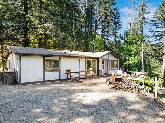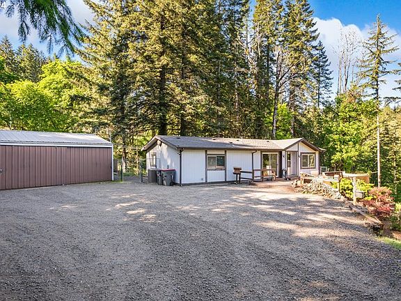 Nestled in the hills of McMinnville (about a 6 minute drive from town), this cozy home checks all the boxes for a quiet retreat in the woods, with decent space from neighbors, but without feeling too isolated. The road is paved up to about 100 yards from the driveway. The 2 acre lot is a mix of mature trees and grassy yard, some level, some sloped. A natural spring creates a year-round small creek at the back of the home. Exposure is South East, with some cleared spaces to let the sun through in the mornings and yet enjoy shade in hot summer afternoons. Though not recently updated, the interior feel fits the setting quite nicely. The layout is practical and the home has been well maintained. Heating, cooling and water heater are all newer, as is the hot tub. The detached garage/shop has power and it's own panel.