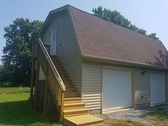 BRING BACK UP BUYER...Stunning historic home on 1.00 acre boasting gleaming hardwood floors, amazing wood walls, wood-beamed ceilings, and exposed brick throughout! Spacious living room embellished with a stone profile fireplace; Dining room highlighted with built-in shelving; Eat-in kitchen adorned with top of the line downdraft stove, ample cabinetry, and updated sleek stainless steel appliances; Charming sunroom and office complete the main level; Primary bedroom with expansive sitting room ; walk-in closet; Additional bedroom, full bath with a soaking tub, and laundry room conclude the upper-level sleeping quarters; Expansive third-floor bedroom offering cathedral ceilings and recessed lighting; The exterior features Landscaping, 2-car detached garage with upper-level workshop, covered porches, tobacco barn with a fireplace, secure storage, floodlights, and backs to farmland! A MUST SEE!