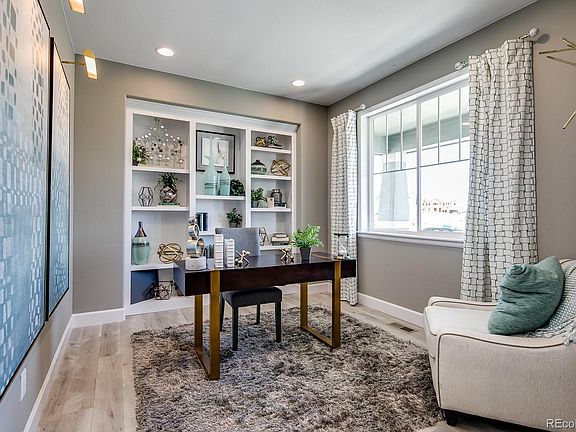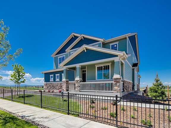 Former Builder Model Home!!! Brand New Home Never Lived In!!!! This former model home in The Hills at Buffalo Run can be yours!! Professionally designed with custom features throughout, this home is turn-key and ready for you to move right in! Situated on the 6th hole of the Buffalo Run Golf Course, enjoy mornings and evenings with mountain and golf course views from your covered deck! The main floor features a study off the entry with custom built bookcases, a powder bath with full custom tile accent wall, a mud room with cubbies for storage, and a large formal dining room. The stunning kitchen features two-toned cabinets, an oversized designer kitchen island with gorgeous granite slab countertop, tile backsplash, quartz countertops around the perimeter, and a bonus eat-in nook. Enjoy a butler's pantry with extra cabinetry and a huge walk-in pantry! The two-story great room has tons of windows looking out to the golf course! Custom accent tile to the ceiling and laminate plank flooring complete the room. The second floor features the master suite with crown molding, coffered ceilings, custom light fixtures and more! The master bathroom features dual vanities, our popular and functional makeup desk, walk-in shower and oversized soaking tub. The huge walk-in closet has enough room for it all! The master bath also features direct access to the convenient upstairs laundry room featuring plenty of upper and lower cabinets as well as a utility sink. The loft off the landing is the perfect spot for another office, media room, game room, play room and more! Two additional bedrooms and a full bath with dual vanities complete the second floor. Enjoy the huge basement ready for you to customize to your needs!! Garden level home allows for great light into the basement. Don't miss this stunning former model home on a large home site! Photos are of the actual home for sale!