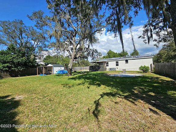 Check out this 3 bedroom, 2 bath home sitting on .50 acre fully fenced lot in Spring Hill. This home has had several improvements such as: brand new roof in 2022 with solar panels, new shed 2022, new AC fan motor 2022, new railing installed on front steps, new fencing added to the front and side yard, new gated entrance to side yard, new faucet and showerheads, new LED lights on covered patio and new well pump in 2022. Plenty of space to keep your toys and have a family gathering in the backyard. Schedule your showing today!
