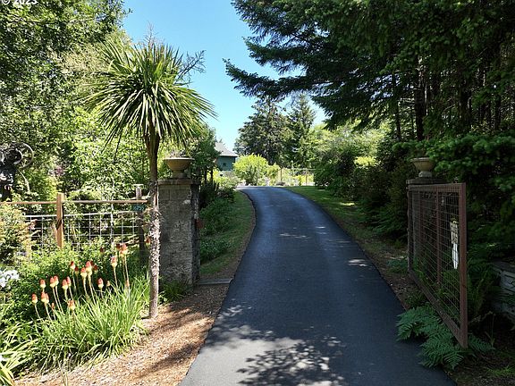 Chetco River Views! This custom tri-level residence offers unparalleled river views that take your breath away. With two primary suites, including one on the main level, comfort and luxury are at the forefront. The high beamed vaulted ceilings create a spacious and inviting atmosphere, while the heated flooring throughout the entire house, including the garage and studio guest quarters, ensures warmth and coziness all year round. Step into the studio guest quarters, complete with a kitchenette and a full bath featuring a walk-in shower. The French doors and tall picture windows flood the space with natural light, highlighting the eclectic custom-stained cement, bamboo, and tile flooring. Open the French doors and step onto the beautiful deck, enjoying stunning mountain and unobstructed Chetco River views. The kitchen is a chef's delight, boasting custom cabinetry, a spacious eating bar/island, beautiful granite countertops, stainless steel appliances, and a 5-burner stainless steel gas stove. The large laundry room/pantry conveniently includes a half bath. The lush garden enhances the property's beauty; mature fruit trees, including kiwi, and the paved, landscaped gated entrance ensures privacy and security. Despite its secluded feel, this home is just a short distance from downtown, local beaches, shopping centers, and schools. The landscaping surrounding the home is meticulously designed, adding to the overall aesthetic appeal. This creatively eclectic home is truly a work of art in a fabulous location. One of the unique features is the woodburning round fireplace that provides warmth and rotates, embedded in a boulder that the house was built around. Don't miss the opportunity to experience this unique, artistically dynamic home that offers comfort, privacy, and breathtaking views. Schedule a visit today and make this dream property yours! Ask to see the 3D tour! #BrookingsOregon #SouthernOregonCoast #ChetcoRiver #OregonCoast #PrivateGatedDriveway