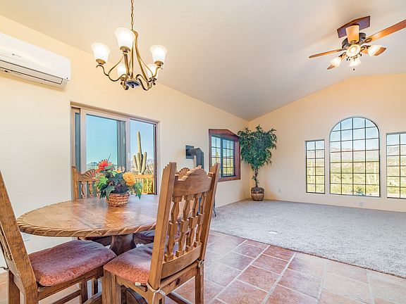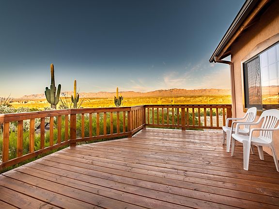 Incredibly Sweetl Tuscan style home with 794 sq ft oversized garage on up to 8.4 acres covered in lush desert with saguaro studded view. Quality built, well insulated, Stale Appliances, Mesquite accents inside & out. Stone walled patio and deck. Every window looks out to the meandering San Pedro River Valley with the Galiuro Mountains as the backdrop. Block garage has 2 full sized 8 ft tall garage doors plus workspace. Amazing well produces 35 GPM with a solar pump. Charming outbuilding is framed and finished on the outside and ready for you to make it your own, studio, workshop, storage or even potential for guest house. Pinal County just paved the road within about 400 ft of this secluded home. Buy the home on 4.2 acres for $299,000 or on 8.4 acres for $325,000.