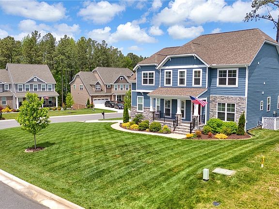 Move-in ready in the beautiful Harpers Mill subdivision of Chesterfield County. Why wait to build when you can move right into this like-new 2020 Lifestyle Home Builder's Elliot floor plan with endless upgrades! Welcome to 16755 Sayley Drive in the fully-finished Glen Royal section of Harpers Mill and within walking distance of the top-rated Winterpock Elementary School. This vinyl & stone-sided craftsman style 2-story home sits on a landscaped corner lot and consists of 5 bedrooms & 4.5 bathrooms over 3,384 sqft of living space. Upon entering you are greeted with sawmill hickory wood laminate floors throughout the first level. The office has French doors for privacy and the formal dining room has a high tray ceiling. The eat-in upgraded kitchen features an open concept to the living room & morning room spaces and features granite counters, a large breakfast bar island, gas cooking, a pantry, stainless steel appliances & ample cabinet space. The living room is highlighted with a coffered ceiling & gas fireplace. The first-floor bedroom has a walk-in closet & ensuite bathroom for guests or multigenerational families. The first floor is completed with a custom built-in drop-zone leading from the garage entrance and walk-out access to the rear deck off of the morning room/breakfast nook. The second floor of the home is fully carpeted and highlighted with an oversized primary bedroom suite with tray ceiling, 2 walk-in closets, ensuite bathroom w/dual vanity, step-in shower & separate soaking tub. The loft/family room space is flexible and open. This level is completed with a Jack & Jill style bedroom/bathroom setup, a laundry room, additional bedroom & hallway bathroom. The exterior of the home features a side-entry garage w/ ample overhead storage, a private rear deck w/ patio lights & a fully fenced backyard with dark aluminum picket-style fencing. The home is just a short walk or bike ride to the Harpers Mill HOA clubhouse, pool, playground & lighted sports field. Just a short drive to endless shopping & dining!