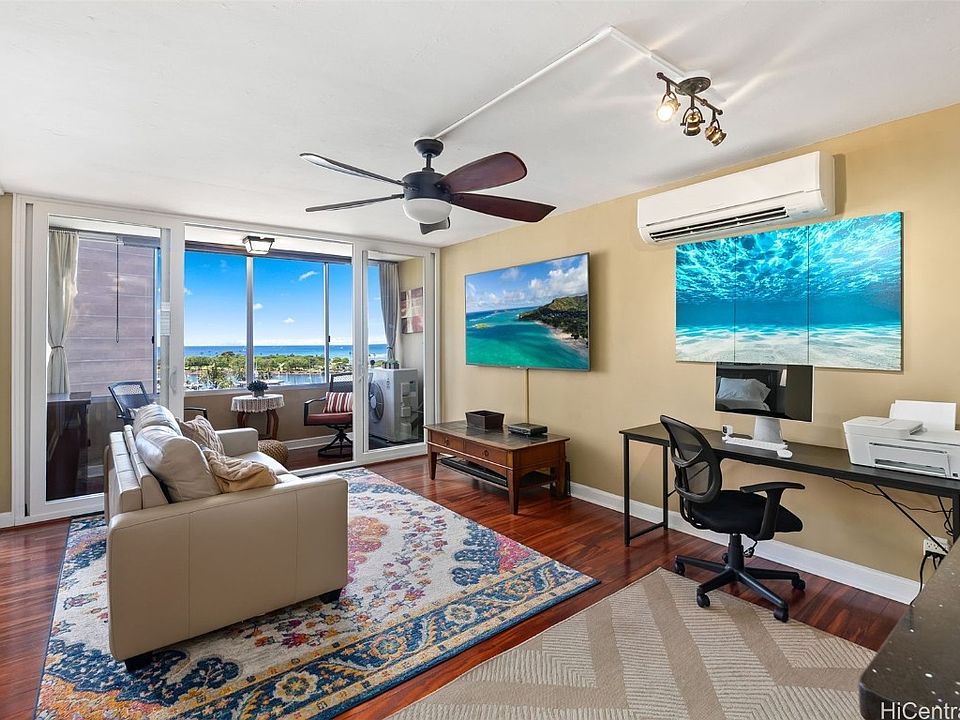 Perched on the 11th floor, in the comfort of this luxurious residence, you are treated to panoramic views of golden sunsets looking out across the Pacific Ocean, picturesque sights of the marina and stunning coastline. A beautifully renovated and fully furnished gem nestled within Harbor View Plaza, located at the gateway to Waikiki and a short distance to Ala Moana Shopping Center and Ala Moana Beach Park. Impeccably designed with meticulous attention to detail, this spacious residence offers a harmonious blend of contemporary elegance and tropical charm. Step inside and be greeted by an open-concept layout, adorned with quality finishes and an abundance of natural light. With its prime location, you are situated near pristine beaches, world-class dining, and vibrant entertainment; unit 1102 at Harbor View Plaza is the epitome of Waikiki living at its finest. Don't miss this incredible opportunity to own a slice of paradise in one of Hawaii's most sought-after destinations. This unit features a split AC, wine refrigerator, on-demand hot-water heater, extra pull-out refrigerator drawers, pantry closet, lots of storage, an onsite storage locker, and secured/covered garage parking.