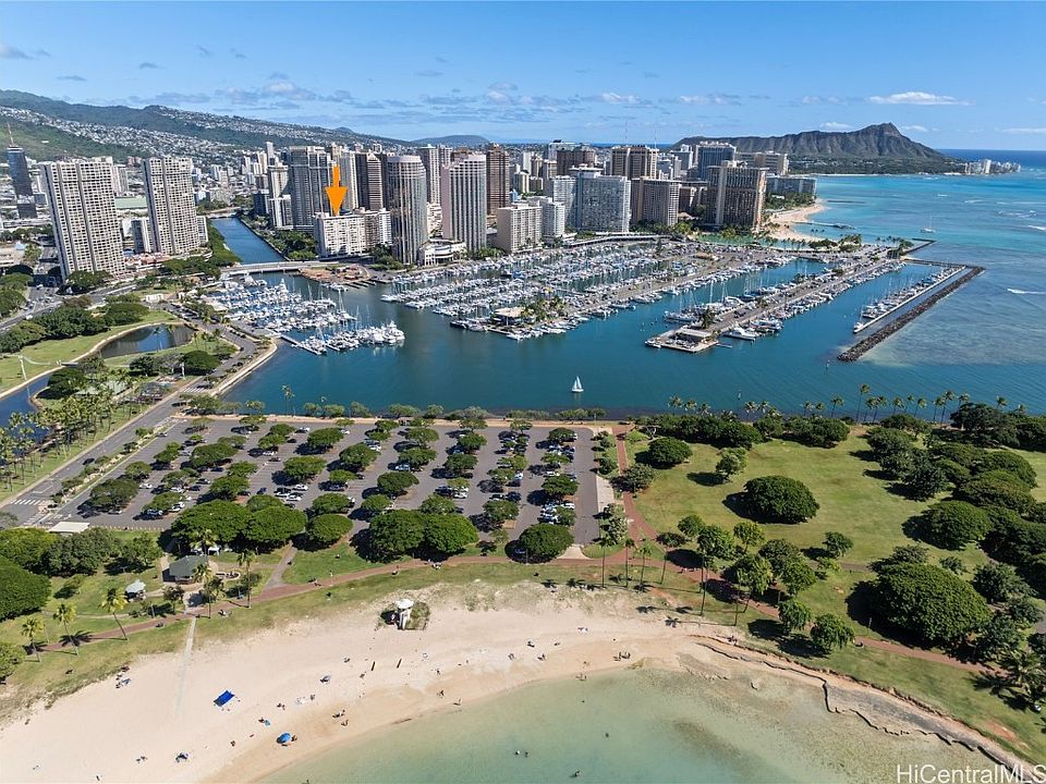 You will love living on the quiet side of Waikiki where outdoor enthusiasts will be close to both world-famous Waikiki Beach and Ala Moana Beach Park. Right around the corner is Ala Moana Mall, the largest open-air shopping center in the world, with enough restaurants to satisfy everyone’s taste and almost endless shopping. This "turn key" unit is in fantastic condition, no details have been overlooked, and it is being offered furnished. The unit features gorgeous mountain, city, canal, and harbor views. Upgrades include a private lanai, newer SS appliances, new luxury vinyl flooring, no popcorn ceiling, A/C, remodeled bathrooms, solid wood base and crown molding, glass tile backsplash, automatic blinds, full size W/D in unit, fresh paint, an exterior storage locker, and covered parking. The Harbor View Plaza is a PET FRIENDLY, well maintained, and secure building with reasonable maintenance fees that cover cable, internet, water, sewer, and a full master insurance policy that covers 100% of the buildings replacement value. Amenities include a very relaxing swimming pool, BBQ, picnic area, car wash, and security.