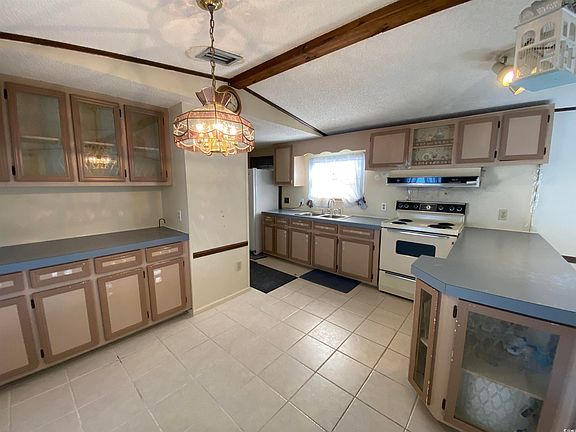 Golf cart ride to the beach! Crystal Lake offers private lake for fishing, boating and swimming. This home offers a large screened porch, fully fenced yard and 2 out buildings for extra storage. Walk in to this open floor plan with living room and kitchen both with vaulted ceiling. However still offers a split bedroom floor plan Located in the award-winning school district of Socastee. Located just minutes from the beach, golf, restaurants, airport and everything the Grand Strand has to offer! Lot rent includes water, sewer, trash and main area maintenance. Please see attached docs, there is a list of repairs that the park requires to be complete 30 days after closing. Owner is selling As-is.