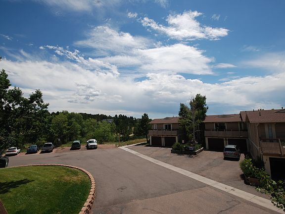 Featuring neutral paint colors and a desirable open floor plan this Monument Condominium can't be beat! Living room area with plush carpeting, striking exposed brick wall extending to the formal dining room, a fireplace that is perfect for chilly Colorado winters and sliding glass doors out to a sunny deck. Raised from the living room is a tile kitchen with beautiful counter-tops, matching white appliances, a custom, elegant tile backsplash , an abundance of cabinet space, counter with overhang for eat in kitchen seating and desirable overhead lighting. Tons of closet space throughout the space. Spacious master bedroom with private master bathroom, over sized walk in closet, and sliding glass doors out to the deck. One car attached garage. Completely maintenance free exterior including the roof and professional grounds keeping. This home won't last, schedule your showing today!