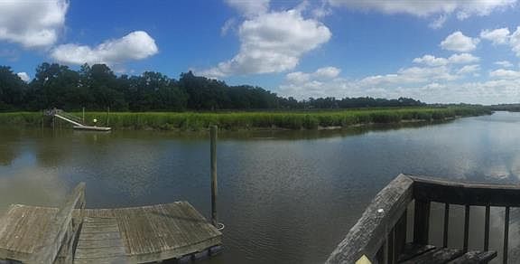 Waterfront Boat dock , Deep Water at high tides up to 8 ft and dead low tide prevents navigation to harbor. 12 x12 6 feet is covered dock and an 8 x 20 floating dock. Fabulous opportunity for deep water on James Island. 3.5 miles to downtown Charleston. Beautiful water front lot with many Oak trees in the back yard (oak trees sit far from the house). Great bones to this 1954 Stucco House. 1726 SQFT and 378 SQFT carport 3 bdr, 2 bath needs updating being sold as is. Current owners inherited property and have not occupied for long. Parents owned prior and said that there has been no flood damage during their decades of ownership. There is an American Home shield warranty on the ac unit. Check with the Town of James Island for possible rezoning. Please verify measurements and scho