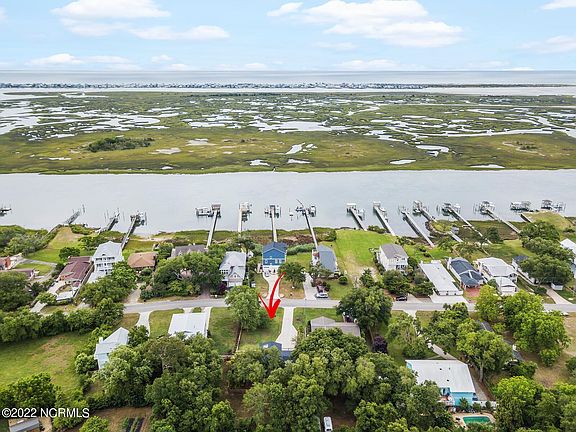 Come here to enjoy the beautiful, soothing views of the Intra-Coastal waterway and long-distance ocean views at the Southern tip of Topsail Island. Step out from your patio door from the master bedroom to the side deck for your morning coffee. Watch the boats go by. Feel the ocean breeze. Hear the occasional bird in a quiet but well-established neighborhood. Smell the fragrant jasmine from your landscaped yard. There's room for all your family on the front deck to enjoy the water views from a high and dry lot. There is ample parking for them in your large, paved driveway. Also, there's a second master bedroom shaded by live oaks in the backyard. The sunny Florida Room affords the same relaxing water views and has access to the open floor plan. This home was updated this year, 2022, with new flooring, paint, light fixtures and fans, and exterior staining. Rest easy knowing that there's a new hot water heater, stove and refrigerator. The roof was replaced in 2021. Be storm ready with very heavy-duty accordion shutters and back-up generator. Whether this will be your forever home or a vacation escape, this idyllic newly updated home is a hidden gem. Besides being a short drive to the beaches, there are gas and grocery stores, restaurants, and health care providers within two miles.