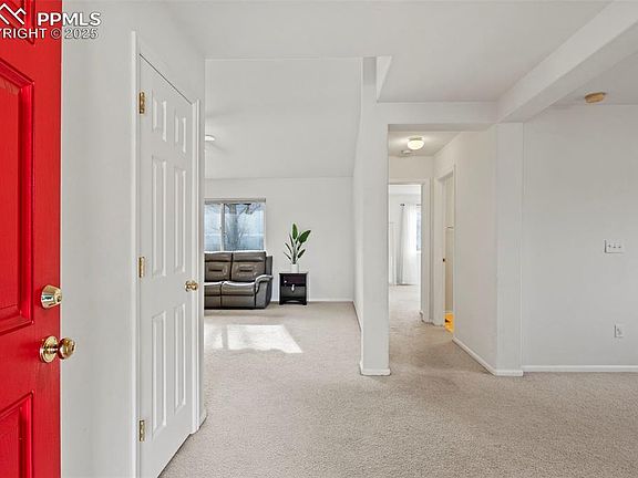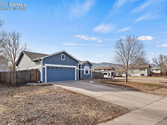 Discover the perfect blend of comfort and convenience in this ranch-style gem, offering main-level living on a spacious corner lot with breathtaking mountain views! Just minutes from Forst Carson. This home features 2 bedrooms and a versatile flex space that can easily serve as a 3rd bedroom or home office. The primary suite boasts its own ensuite bath. The open kitchen flows seamlessly into the living and dining areas, creating a welcoming space for gatherings. Step outside to the expansive concrete patio, complete with a retractable awning that transforms it into a true outdoor retreat. The large, privacy-fenced backyard is ideal for entertaining, relaxing, or enjoying Colorado sunsets, with a convenient shed for all your storage needs. With central A/C, thoughtful design, and a prime location near military bases, shopping, dining, and I-25, this home is a must-see! Don’t miss the chance to make it yours.