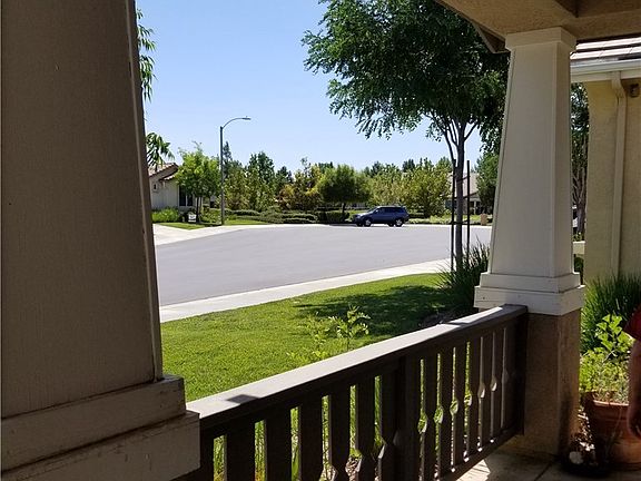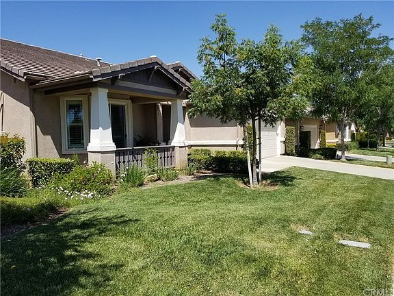 On quiet cul-de-sac in Four Seasons 55+ gated community. Front yard maintained by HOA. Wide front entry into spacious dining & family rooms with handsome built-in entertainment center & display cases. Tiled flooring throughout, home is cool without A/C even in mid Summer! Breakfast counter accessible from dining room into kitchen provides convenient service area. Large kitchen w granite buffet center island, ample shelving below. Recessed lighting. Cherrywood cabinetry along both walls, expansive granite countertops, and modern appliances perfect for the gourmet chef. Bright dinette nook inside front patio door. Custom plantation shutters on all door and windows. Carpeted master bedroom, ensuite bathroom w walk-in closet and separate w/c. Adjacent office by hallway w linen closet. 2nd bedroom separate hallway, 2nd full bath and individual laundry room w utility shelves. 2-car garage with side door access to back yard. Highlighted unique feature of this house is the backyard full of fruit trees, plants, flowers, berries and vegetable garden - proud cultivation by owners with horticulture expertise. Shaded paved patio under custom trellis of grapevines for relaxation and entertainment. This active senior community offers 3 clubhouses with theater, game rooms, gym, library, bistro, pool, spa, BBQ, tennis courts, and hiking trails. Resort-like surroundings feels like a holiday everyday! Just a short drive to Morongo Casino, Cabazon Outlets, and Palm Springs.
