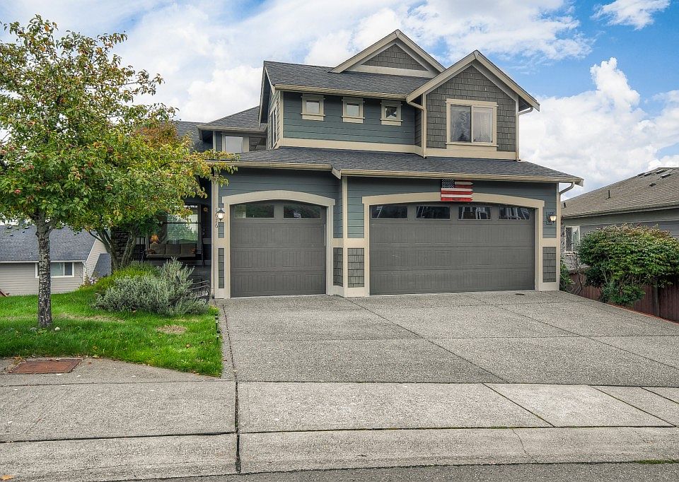 The Chesapeake Plus model w/a FANTASTIC VIEW!, and nice yard. This home design focuses in view capture & livability and is located on a cul-de-sac in a premier neighborhood. Extensive use of finished hardwood flooring, upgraded appl. package, granite, full landscaping & tons of storage. Lvng rm, fmly rm, rec rm, media room, 5 bdrms, PLUS den. If you are looking for something with a VIEW come see this Carbon River Home in Tumwater located in The Highlands at Somerset Hill.