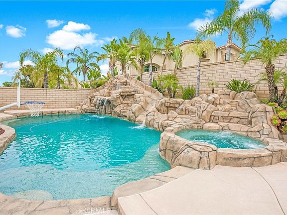 Welcome to 1676 Tamarron, an exquisite oasis nestled in the heart of Corona. This captivating residence offers 3351 sq feet of freshly painted living space. There are 4 bedrooms and 3 bathrooms with one of each on the main floor. Upon arrival, you are greeted by a meticulously landscaped front yard, hinting at the beauty that awaits within. Step through the inviting entryway into a spacious and light-filled living area adorned with tasteful finishes, a soaring staircase and refined details throughout. The open floor plan seamlessly connects the living room, dining area, and kitchen, creating an ideal space for both entertaining and everyday living. The gourmet kitchen is a chef's delight, featuring sleek granite countertops, stainless steel appliances, ample cabinetry, and a convenient center island for additional prep space. Whether you're preparing a casual meal or hosting a dinner party, this culinary haven offers both style and functionality. Retreat to the luxurious master suite, where tranquility abounds. This private sanctuary boasts a generous layout, plush carpeting, a double sided fireplace, a huge retreat and a spa-like en suite bathroom complete with dual vanities, a soaking tub, and a separate shower. Step outside to discover your own private paradise. The backyard oasis is an entertainer's dream, lush palm trees, a sparkling rock pool and spa with a slide, and room for a sport court creates the perfect setting for outdoor gatherings or moments of relaxation under the California sun. Conveniently located in the prestigious community of Eagle Glen, this residence offers easy access to top-rated schools, shopping, golf course, dining, parks, and recreational activities. With its impeccable design, prime location, and array of amenities, 1676 Tamarron presents an unparalleled opportunity to experience luxury living at its finest. Don't miss your chance to call this immaculate, 100% turnkey and stunning property. Schedule your private showing today and prepare to embark on a new chapter of luxurious living.
