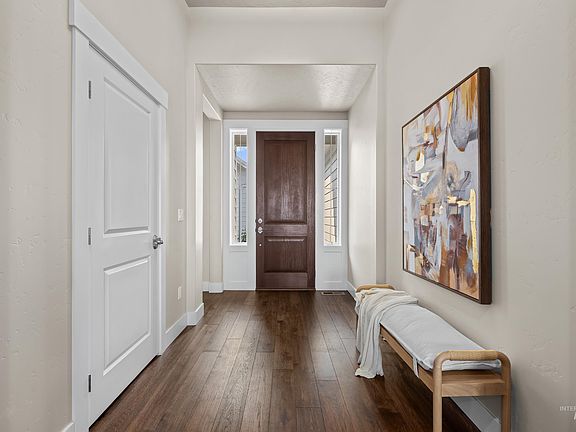 Enjoy unobstructed valley and mountain views from the comfort of your spacious epoxy-covered back patio! This fantastic single-level home includes elegant features and a wonderful open floor-plan featuring 5 bedrooms, an office & 3 baths. The generous sized master suite boasts a huge walk-in tile shower, dual vanities, & walk-in closet. Impressive kitchen with large island, walk-in pantry, quartz countertops, custom cabinets with soft close doors and drawers, double ovens & a whole house water filtration system. Enjoy the open living area with natural light from the large windows and a cozy gas fireplace. Lots of closet and storage throughout the home as well as cellular blinds throughout. This home offers incredible space for entertaining both inside & outside! Summit Ridge is Nampa's newest luxury neighborhood which features extensive open space, common areas, an amazing community pool, bocce ball court and a playground area.