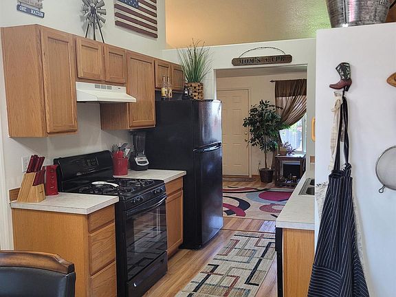 Nice one level in cul-de-sac many updates. Vaulted ceiling open floor plan. Luxury wood plank flooring throughout main areas. Double car garage with garage door opener. Air conditioning, gas stove. Nicely fenced back yard with raised garden boxes. Covered Trex decking with Hot tub. Attic area sheeted for storage with built-in ladder.