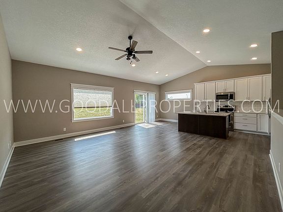 Rent Special! $2450 down from Market rate of $2950! This home has an open floor plan with 9ft ceilings. 4 bedrooms, 1 3/4 bath, & laundry on the main floor. The living room and kitchen have large windows with southern exposure so you will enjoy the natural light. Luxury vinyl flooring in the hallway and kitchen with Quartz countertops, tiled backsplash, pantry, and brushed nickel hardware and faucets. The master bedroom with tray ceiling, and fan, and the bathroom with higher dual vanities, Quartz counters, a shower, a linen closet, and a walk-in closet. The lower level includes a large family room, full bath, and large bedroom. This basement also includes a large unfinished storage area. Pets considered with owner approval. Additional $500 Pet Security Deposit and $50 Pet Rent. No Smoking. Goodall Properties, LLC 3233 Ashworth Rd Waukee, IA 50263 Licensed in Iowa