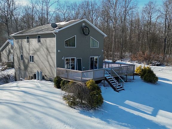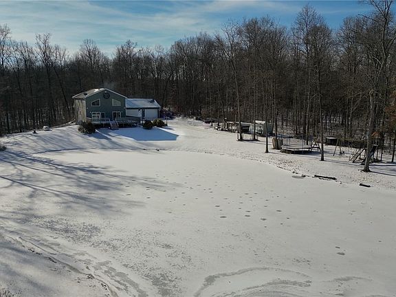 Have you been looking for that private, secluded property that just doesn't seem to exist? Welcome to Shillings Rd. where you are surrounded by 8.5 acres of woods, and you get to enjoy lake views from the moment you wake up with your very own private lake (approx. 1 acre). This custom build home will sure not disappoint from the moment you walk through the door you have an open concept living room, dining room, and custom kitchen with large center island all overlooking the lake. To complete the first floor, you have a bedroom/playroom or office, half bath and laundry room. Upstairs you will find the master suite with large picture window overlooking the lake, master bathroom and walk-in closet. To finish off the second floor you have additional two bedrooms that are large and sure to not disappoint. To complete the tour of the home you will go down the custom spiral staircase to the finished 18 course walkout basement, that is complete with a theater room, bar and half bath. To
