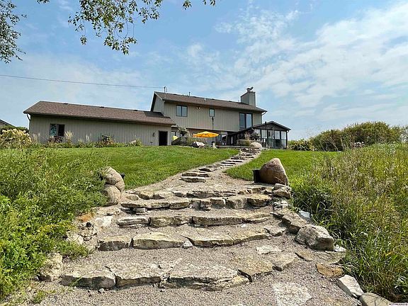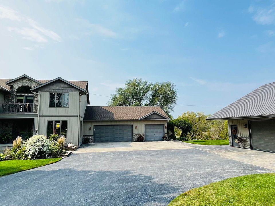 Outdoorsman's Property...Where do we begin. 10 acres including water, woods, and a beautiful acreage. 3 stall attached garage 24x36. 2 stall oversized detached garage 30x40 metal roof. Fenced in garden and garden sheds. Beautiful patio, with a fire pit overlooking the water. Walk way that leads down to a platform to fish or paddle boat. Water is stocked with several different type of fish along with an Aerator. Main floor includes kitchen, dining room, living room, office, laundry room, half bath and Beautiful added on Three Seasons Room. Second floor includes four bedrooms, full bath with double sink and master bedroom which includes a walk-in closet double sink and full bath. Basement includes family room/bar, storage room, half bath, and utility room. Double stall attached garage has access to the basement utility room or into the kitchen. The third stall has a door through the garage which is used as a heated workshop. Detached garage includes a dog door that leads out to a cage.