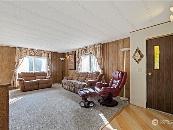 This home is ready for your personal touch. 3-bedroom, 2-bathroom, 1,536 squ.ft. manufactured home in a great location. Nestled on a large, private lot with a wrap-around driveway. The detached shop with an office and a bathroom could be perfect for an in-law suite or rental income potential. Backyard has a small shed and large garden space. Conveniently located close to schools, downtown shopping, parks and I-5. Tour this home today and imagine the possibilities and the value you can add.