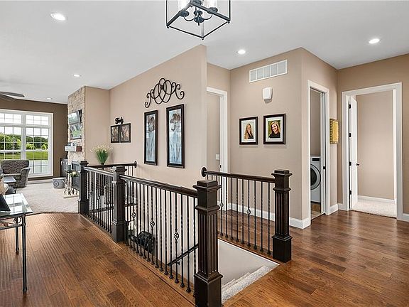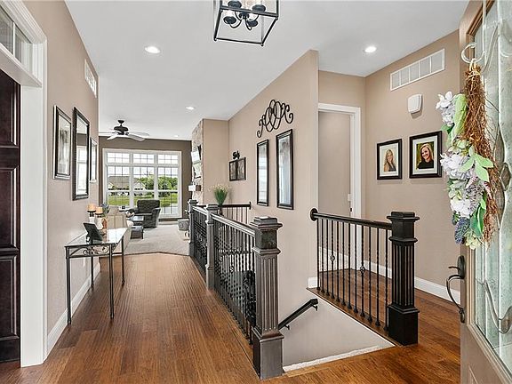 There is a lot of WOW factor in this 3 year old CUSTOM BUILT home! 10' ceilings throughout the entire main level with 8' tall windows and 8' interior doors! 2"x 6" Framed Walls. Open concept Living, Dining, Kitchen, and Sun Room. Large Master Suite with Custom Tiled Shower, Jetted Tub, and Dual Bowl Granite Vanities. Master Closet features 58' of hanging space! The Kitchen features Hardwood Flooring, Quartz Counters, soft close Cabinet doors and pull out drawers along with two large Pantries. The Sun Room features built in Cabinetry and direct access to Pool area. The Living Room features a stoned wall Gas Fireplace. The over-sized Garage features a slip resistant floor with plenty of built in storage. The lower level features plenty of daylight windows with a Family Room, two additional Bedrooms, and a full Bathroom. There is plenty of storage space. Outside the home features beautiful landscaping, an In-ground Heated Pool with auto cover, and yard has a sprinkler system.