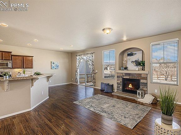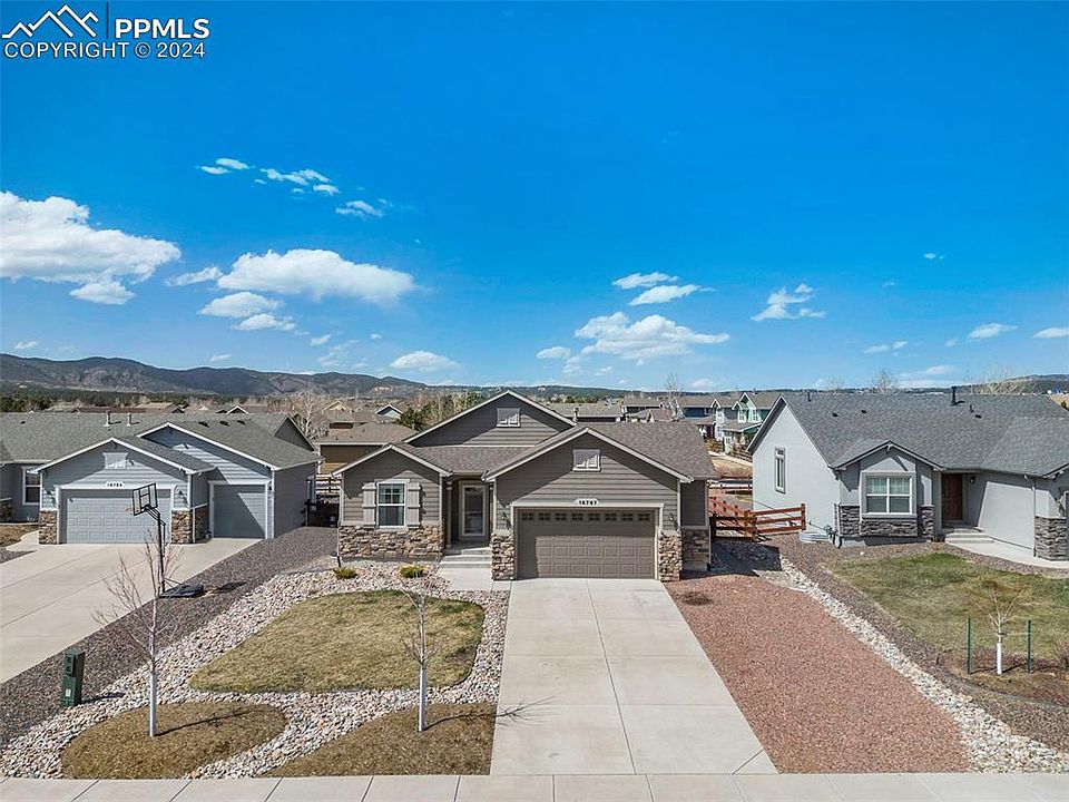 Welcome to your dream home nestled in a charming Monument community! This spacious home is main level living at its finest with 2 bedrooms (including the master) on the main, and 2 bedrooms in the basement with the potential for adding an additional bedroom! As you approach, you'll be greeted by a south-facing driveway, ensuring easy snowmelt during the winter months. Inside, the main floor will welcome you with real oak hardwood floors throughout, and luxurious granite counters in the kitchen! Stainless steel appliances, including a brand new refrigerator and gas stove, elevate the culinary experience in this beautiful kitchen! The open floor plan seamlessly flows from the kitchen to the living spaces, ideal for entertaining guests or simply relaxing with family. Escape to the fully finished basement, offering additional living space and potential for a guest suite or home office. Stay comfortable year-round with air conditioning while enjoying the convenience of like-new paint and carpeting throughout the home. The large backyard is a serene retreat, complete with split rail fencing. Step onto the expansive composite deck and marvel at breathtaking mountain views, perfect for hosting gatherings or enjoying peaceful evenings. Beautiful low maintenance landscaping in both yards! The oversized garage provides ample space for vehicles and storage. The low HOA and taxes make this property an exceptional value! Vacant land to the east of property has just been approved for new homes to be built. You will appreciate the proximity to award-winning D38 schools, as well as easy access to the Santa Fe trail and downtown Monument via a short bike ride. Commute with ease to downtown Colorado Springs or Denver and enjoy being close to the prestigious Air Force Academy. With attractive landscaping enhancing the curb appeal, this turnkey home offers the perfect blend of comfort, convenience, and Colorado charm! Don't miss your opportunity to make this your forever home!