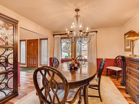 Beautiful landscaped yard & front porch of this stunning home greets you, while gorgeous engineered hardwood floors in main living areas welcome you home. Entertain guests in living room or share meals in formal dining room after cooking in remodeled gourmet kitchen w/slab granite counters, soft close Cherry cabinets, tile backsplash, recessed & under cabinet lighting, large island/breakfast bar & stainless steel appliances w/double oven (1 convection). Relax by fireplace in bright family room w/vaulted ceilings & skylights. Main floor bed w/built-in bookshelves & walk-in closet could be office. Escape to large master & read in bay window or soak in tub of remodeled 5-piece bath. 3 other beds on upper level are great for family. Finished walkout basement w/large bed, bath & living area w/fireplace & wet bar is perfect for guests. Spend evenings on wonderful Trex deck & enjoy beautiful yard. New inside/outside paint, roof in 2018, carpet on 2nd floor, ceiling fans & remodeled baths.