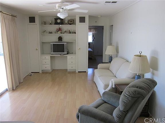 Just painted exterior mobile home with no neighbors across street. Large Living/Dining Rm facing greenbept. Dining Rm has large built-in china cabinet. Open Kitchen has pantry and breakfast bar. Den with built-in cabinets. Master bdrm has a wall of closets plus add'l closet near dressing area. Master Bath has large walk-in shower. Guest rm has walk-in closet and a full bath with overhead shower. Separate Laundry Rm. Large covered patio. Carport has storage shed.