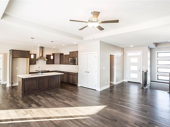 PRICE REDUCED. Take a look at the Bedford plan by Orton Homes. This contemporary plan offers over 3,000 square feet of finish with 3 bedrooms upstairs and 2 bedrooms downstairs. Fantastic living area in the basement with almost 1,200 square feet of finish! Flat pitched roof, black vinyl windows, covered patio, home humidification system, linear fireplace, and stacked stone all mixed together for a clean modern feel while sitting on 13,552 square feet of land. Walk out on your covered patio to mature trees and a huge flat lot. Home is located just blocks from Shuler Elementary within the Waukee School District. Please call for a private showing today.