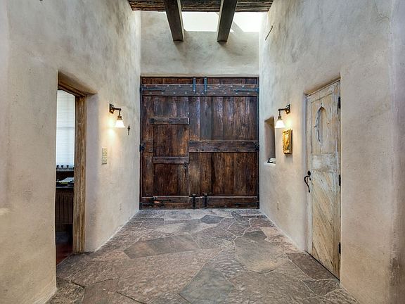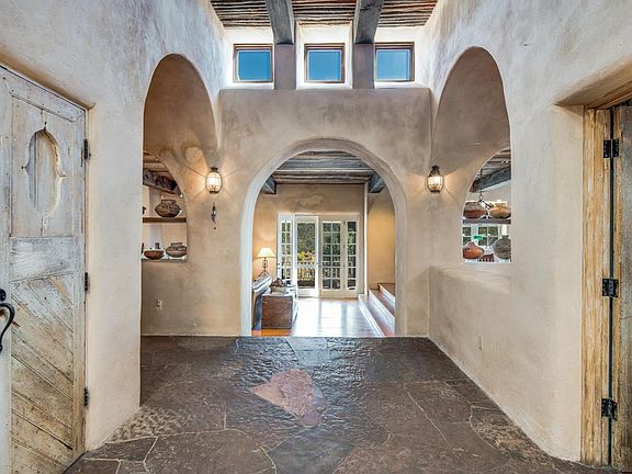 Excellent opportunity for the knowledgeable builder/investor. Property has some structural foundation issues and has been priced accordingly and will be sold as is. This eastside hacienda style beauty boasts commanding watershed and southern Sandia views, desirable cul de sac location, classic features such as sand finish plaster walls, 5 fireplaces, beautiful ceiling treatments, wide plank wood floors, 3 garage spaces and eat-in country kitchen replete with fireplace and traditional tile detail. Buy at a rock bottom price and restore for maximum return in this lovely gated community at the top of Cerro Gordo Road, a mere 5 minutes to the Plaza. Two adjoining parcels are available and could be purchased in conjunction to create a commanding compound.