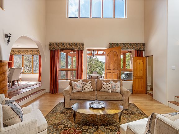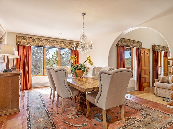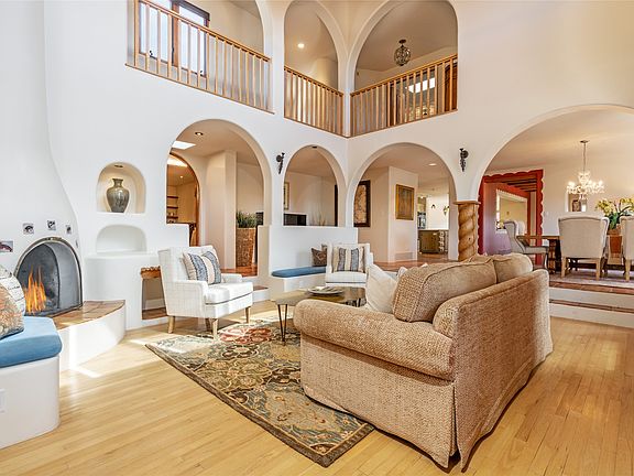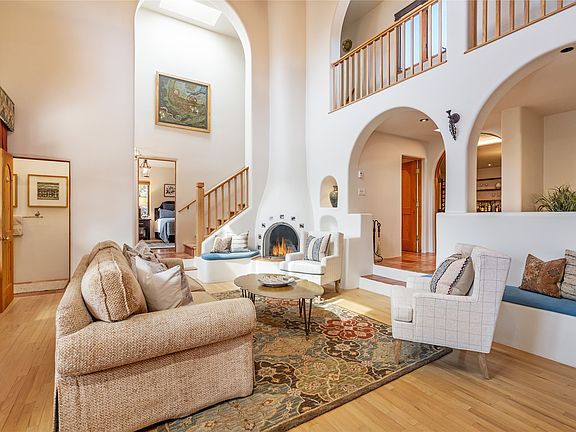 The views are stunning! Facing the East Pecos Wilderness mountains, Picacho Peak, and Atalaya. You’ll hear the Santa Fe River below. This impeccably maintained 4,559 Sq Ft home in the gated Shayakin Subdivision on 1.3 acres is an absolute must-see. 4 bedrooms, 3 1/2 baths with game room/wet bar, office, and studio are perfect for those looking for original Santa Fe charm. Entertain in the Grand Room that has a 22 ft ceiling, vigas, and a kiva fireplace. Saltillo tiles, nichos, portals, and patios make you feel like you are living in a work of art. The 1st-floor bedroom with an on-suite bath has its own flagstone patio and the office can be easily utilized as an additional bedroom. The game room/bar boasts a winning design by the SF Home Builder Assoc. The large Primary Suite has a walk-in closet and spacious on-suite bath. The 2 upstairs bedrooms have access to a common bath and one shares a deck with the Primary that looks to the mountains. The house has solar energy, paid in full, generating a rebate for some months. The roof has a transferable warranty, and new stucco in 2022. The 2-car garage has additional storage. Nearby Dale Ball and Audubon trails provide miles of hiking. Downtown is only minutes away with easy access to restaurants, shops, and cultural attractions. With outstanding location, breathtaking views, and beautiful classic features, it’s the perfect place to call home.