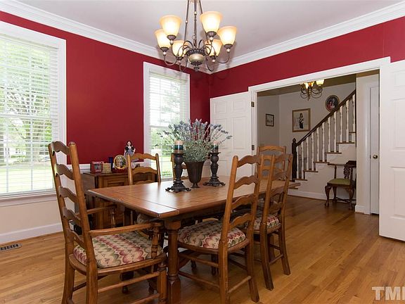 Custom 4 bed home with timeless charm. 3 year roof, nearly new carpet, windows, garage doors, flooring. Wired for security. Attic insulated. Newer ductwork, vapor barrier. 2 water heaters, less than 5 years old. Separate dining room. Hardwoods on first floor. Guest bed and bath down. Huge master and 3 more bedrooms up. Updated baths. Nearly 2 landscaped acres, huge recycled tobacco barn turned into 3 story wired workshop. Pool community - great schools and nearby shopping. Well built home by custom bldr.
