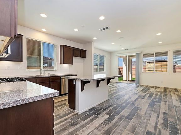 This Beautiful Beaumont Home in the Highly Sought after Sundance Community is Over 1500 Square Feet and Features 3 Bedrooms/2 Baths and 2 Car Attached Garage. Upon Entering the Home, you are met with a Hallway that leads to an Open Kitchen and Family Room with Custom Flooring Throughout. The Kitchen Features: Granite Countertops, Custom Backsplash, Custom Cabinetry, Stainless Steel Appliances and Large Island. Just beyond the Kitchen and Family Room, you will find the Master Bedroom and En Suite Featuring: Walk in Shower, Soaking Tub, Dual Sinks, with Custom Countertops and Backsplash. Down the Entrance Hallway, a Laundry Room can be found with Lots of Storage and Two Additional Bedrooms. Step out to Your Private Entertainers Backyard Featuring Covered Patio, Fire-pit, and a Projector Screen for all those Family Movie Nights! Home is Conveniently located near Park, Pools, Picnic Area, Freeway, Dining, Shopping and More!