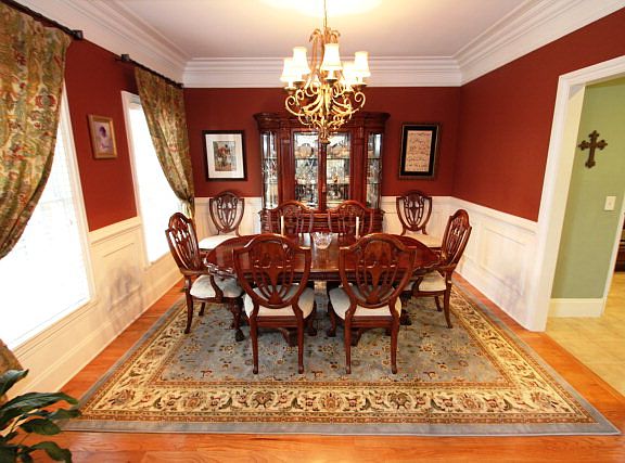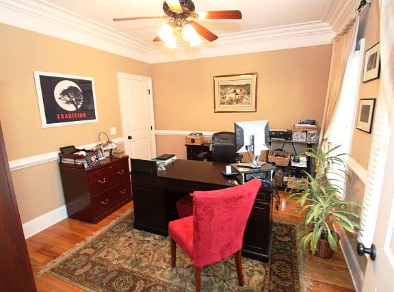 Fresh paint and carpet throughout! Lots of character and charm in this 4-6 Bedroom 4 bath home (2 bedrooms on main level 1 currently serving as office). Open vaulted great room . Formal dining room. Kitchen with a large eat in area overlooking the large back yard with large entertaining porch. Hardwood floors throughout the main living areas and master bedroom suite which boast room 4 seating are