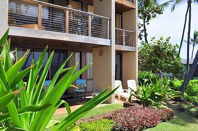 Elegant ocean front, ground floor corner private end unit in the Poipu Makai building. The building has 15 units, covered parking, great proximity to best Poipu beaches. Crashing waves, Honu, and whales in season are all in view. Walk out to lava rocks.