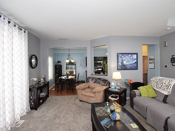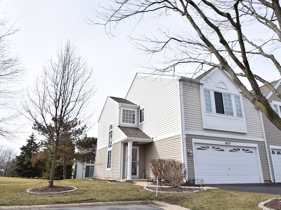 Beautiful end unit in desirable Amber Grove neighborhood!!! This sun drenched unit has a spacious and open floor plan making it feel like a single family home. Step inside the two story foyer into this tastefully updated home. Remodeled kitchen features refinished cabinets, quartz counter tops and stainless steel appliances. Living room features a gas fireplace, the TV/mount above the fireplace stays as an added bonus. Upstairs you'll find a terrific master suite with vaulted ceilings, walk in closet and private bath with double sinks. Generous loft area is the perfect flexible space for an office, bedroom or recreation area. Second floor laundry for extra convenience. Recent paint and flooring throughout entire home. Furnace and water heater are less than 3 years old, new washer/dryer in 2022. New front storm door in 2022 and new custom ordered Anderson patio door is to be installed on 3/5/2023. Patio off the dining room is perfect for outdoor relaxing!! Nothing to do but move in!!! Close to shopping, schools, dining, Metra and expressways. Amber Grove is also approved for FHA financing.