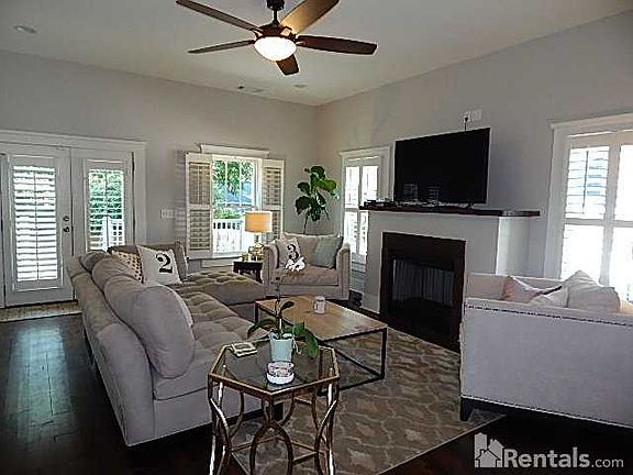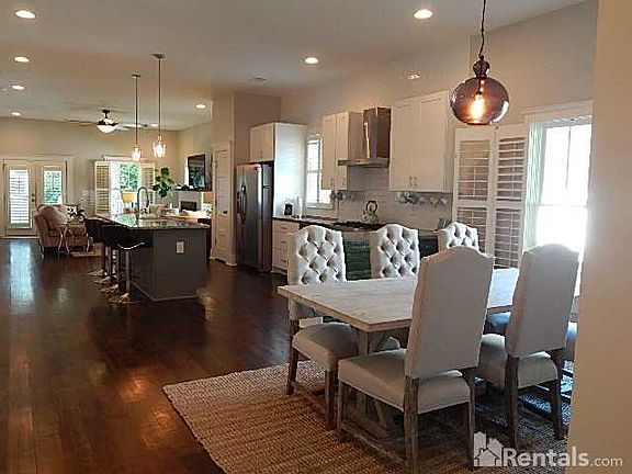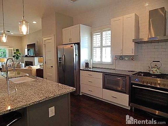 This recently renovated modern farmhouse style home has a ton of unique features such as handcrafted reclaimed wood accents throughout, concrete countertops in kitchen and 2 baths and a chicken coup for you urban farmers! The impressive 10' ceiling open-concept living area features a fireplace with handcrafted reclaimed wood mantel in living room, french doors to the backyard and deck, centralized kitchen with high end stainless steel appliances, concrete countertops and a large granite island which flows effortlessly into the dining area. Hardwood floors are throughout the main living areas of this home, with tiled bathroom floors. The master bedroom features a large walk in closet and marble tiled bathroom with large walk in glass door shower, handcrafted reclaimed wood vanity top with top mount double sinks and a free standing claw foot tub. The additional 3 bedrooms and 2 bathrooms includes one ensuite guest bedroom and one bedroom that could be used as a home office featuring a double door entrance with a beautiful view of the front yard. Both secondary bathrooms feature tiled baths with glass tile accents and water saving toilets. The 2 car garage is just steps from large backyard deck with fenced in backyard and separate chicken coup area. This is a very special property that has been very well maintained, located close to shops, parks, restaurants and entertainment areas of Kirkwood, Oakhurst and Decatur. Washer and dryer included. Pets are allowed with $375 non refundable pet fee. No aggressive breeds. 2 pet max. Currently occupied until end of August, available for new tenants September 1st. Shown by appointment only.