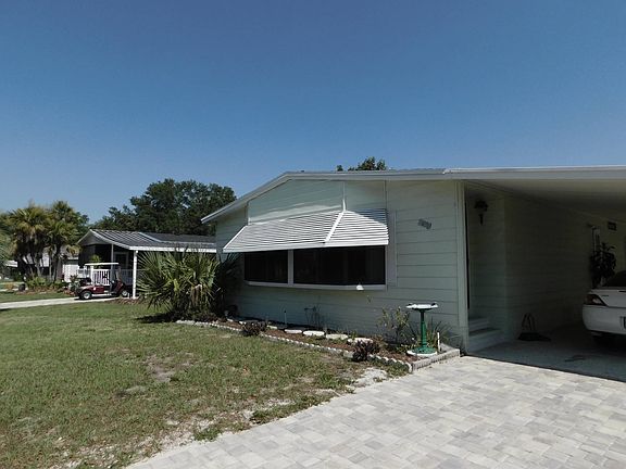 1986 Dutch Manor 2/2 plus a den has 1484 square feet. It has a large living room, dining room along with a family room which has a wet bar. The center kitchen island has an eat-in area. The home has a built-in hutch, shelving, and additional storage. The vinyl plank flooring is 2 years old. The kitchen has a walk-in pantry. Carpeting is in the bedrooms. The washer and dryer are in the hallway entrance. Double closets in the master bedroom and the master bath has a garden tub. The screened sitting area has vinyl windows and indoor-outdoor carpeting. The carport has room for 2 cars. The monthly lot rent is $839.15 (including the pass through). Trash pickup is once a week. A Spectrum package is available for $130 per month. This home is on leased land in a 55+ community in Foxwood Village. Yard maintenance is to done by each owner.